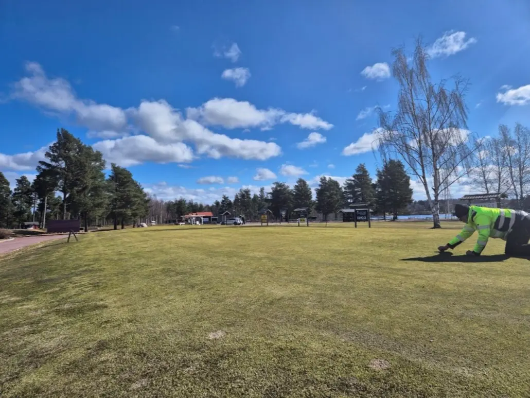 I direkt anslutning till vår vackra bana med utsikt över Österdalälven och klubbområdet har vi 19 st egna ställplatser för husvagnar och husbilar, alla med eluttag.
